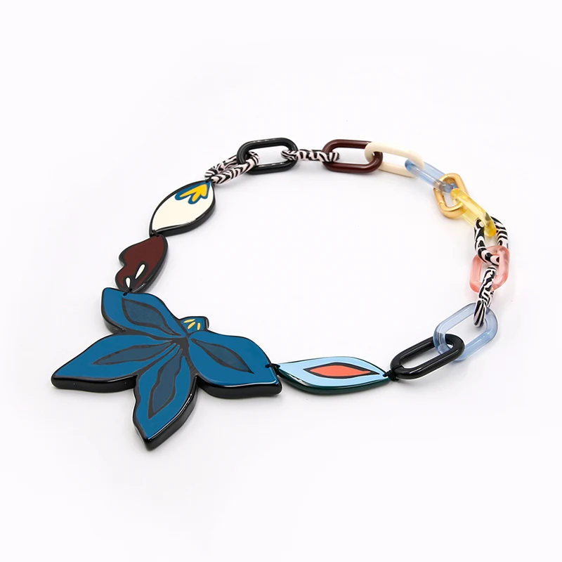 Petal Charm ile Asetat Küba kolye, yüksek kaliteli siyah kordon, renkli Küba zinciri bağlantısı ve yaprak zinciri bağlantısı olan yetenekli işçilerimiz tarafından dikilen, tüm yapıyı bir deyim petal cazibesi ile vurgulayan toplam el yapımı mücevherlerdir.